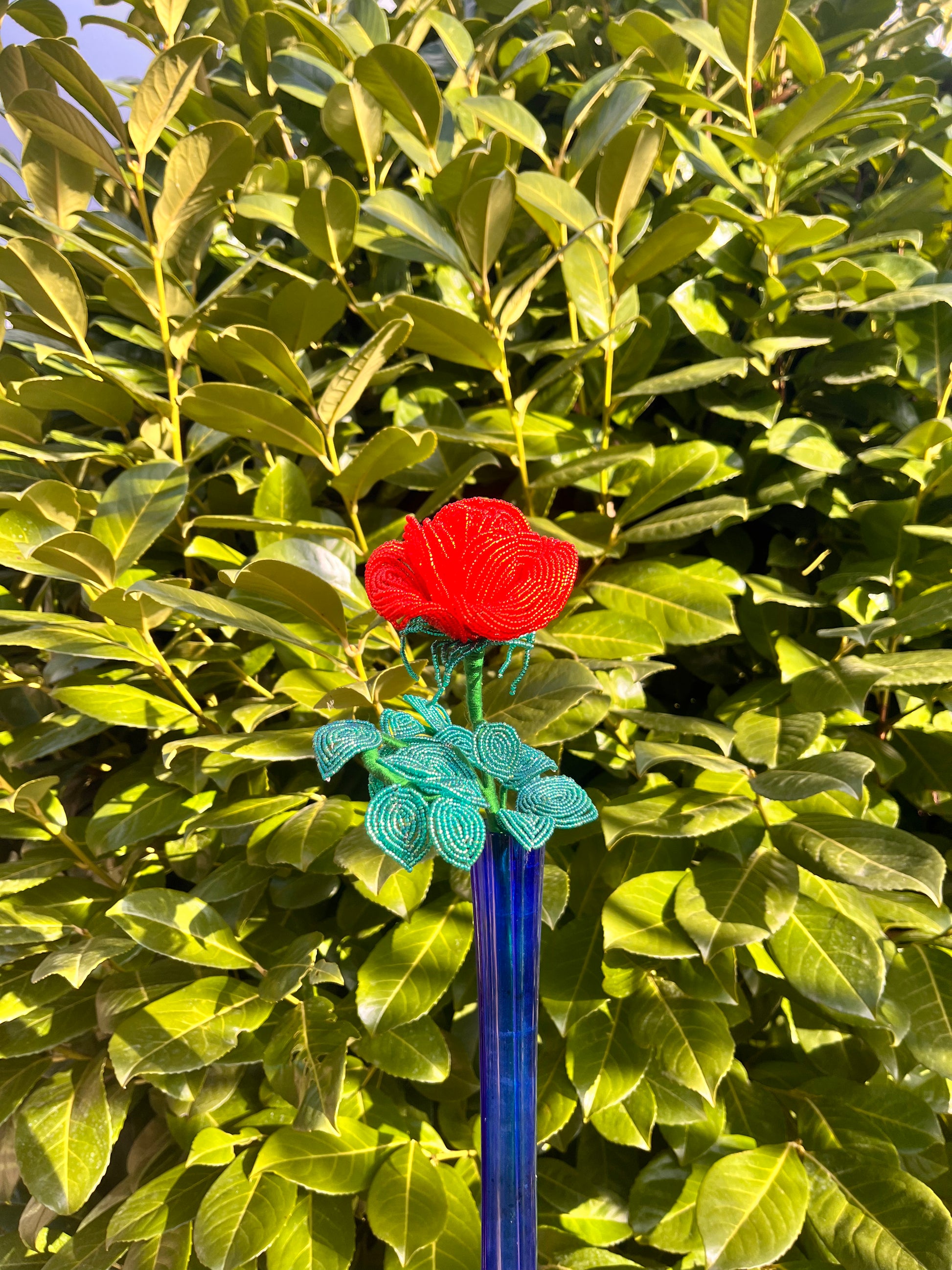 A virág elég nehéz, ezért ajánlatos magasabb nyakú vázába tenni. A rózsa teljes hossza 35 cm. A váza nem jár hozzá.